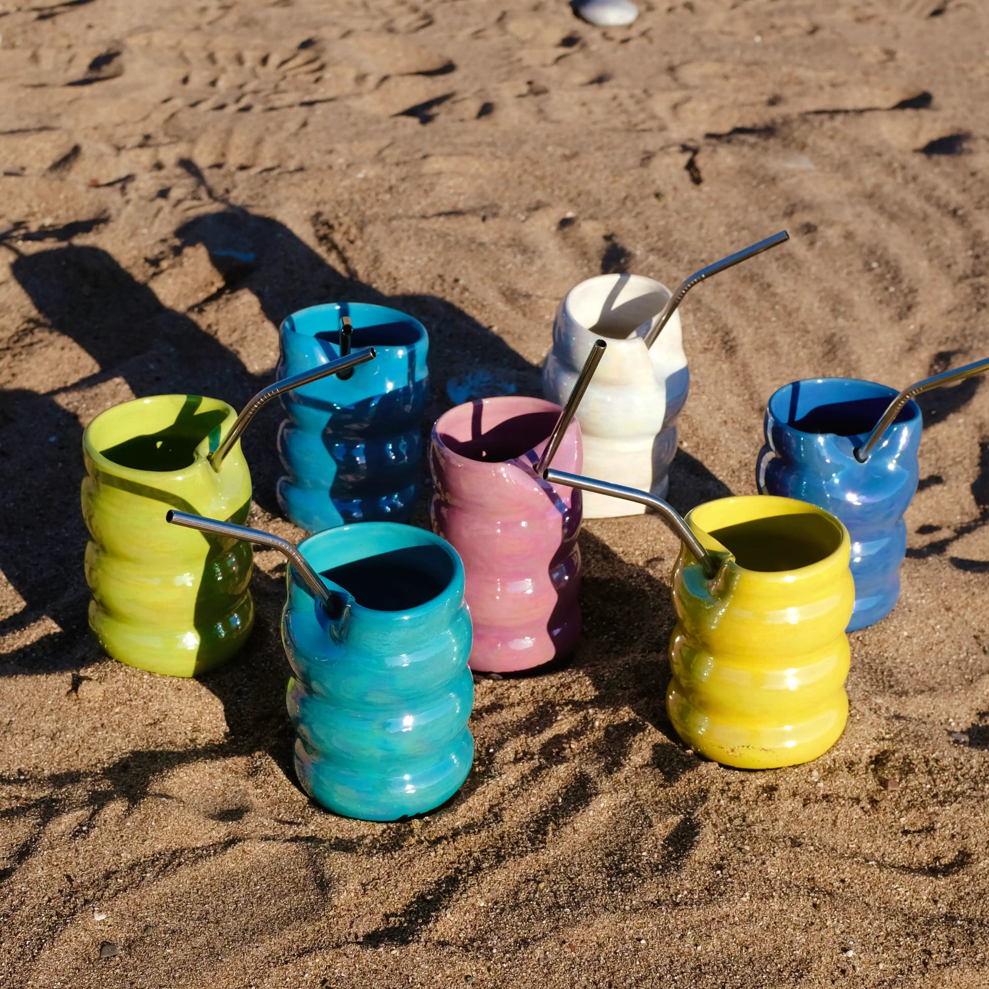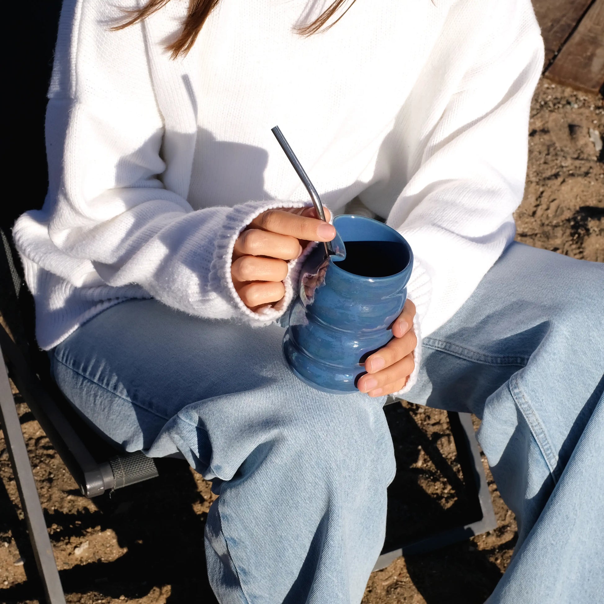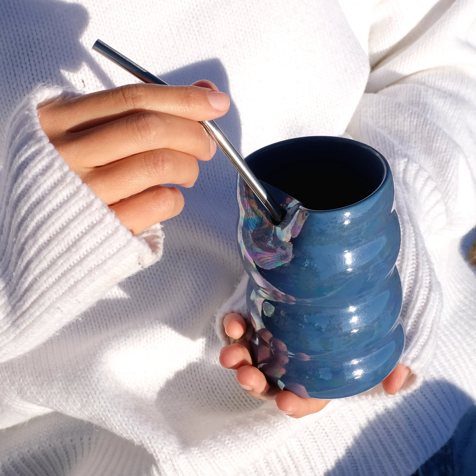 A uniquely designed wavy cup adorned with real gold and paired with a straw, bringing elegance and fun to every sip. Each piece is individually crafted with care, blending style, functionality, and a playful touch. A perfect choice for elevating your daily drinks or as a thoughtful gift.