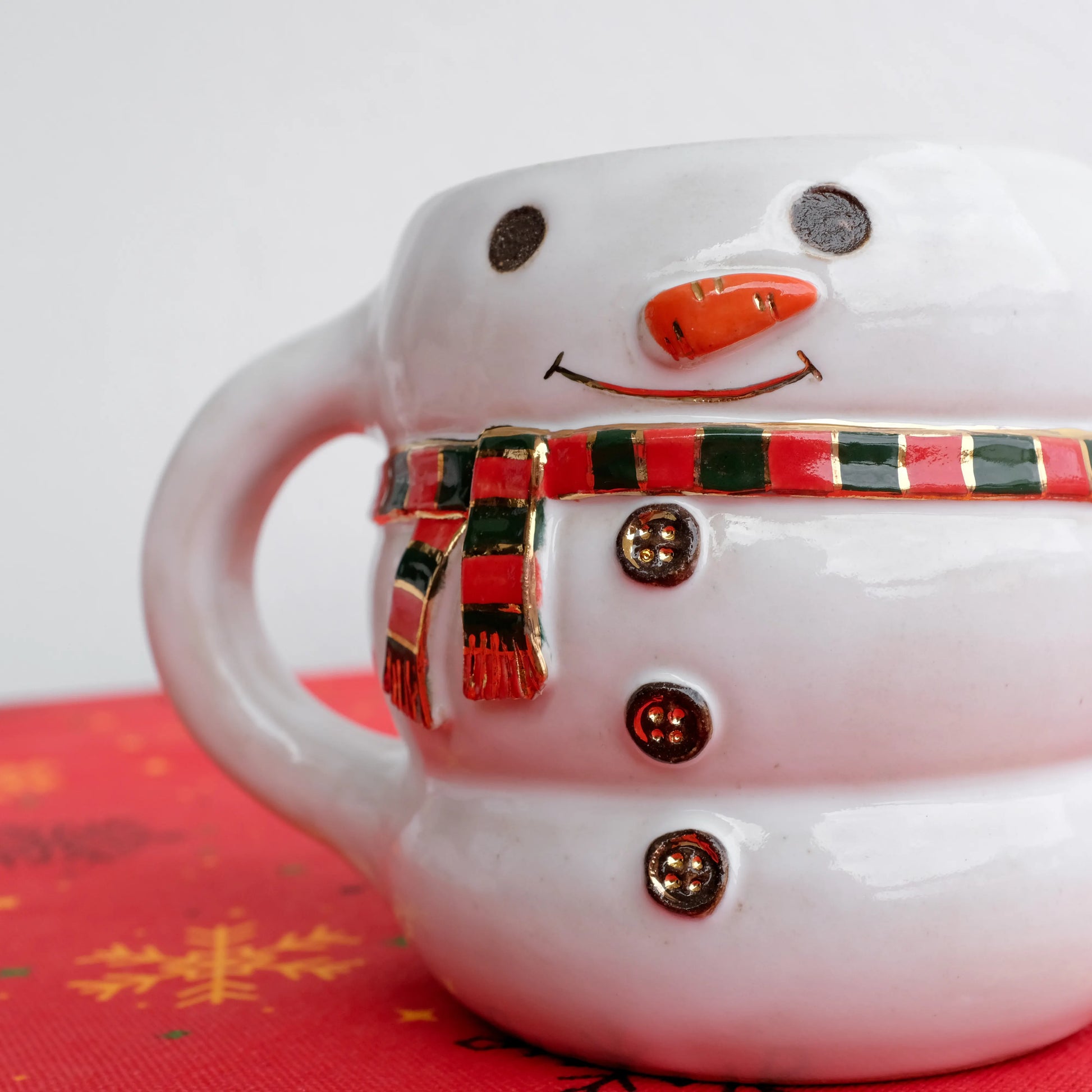 A uniquely designed snowman mug adorned with real gold, bringing elegance and warmth to every coffee or tea moment. Each piece is individually crafted with care, blending style and functionality. A perfect choice for elevating your daily rituals or as a thoughtful gift.